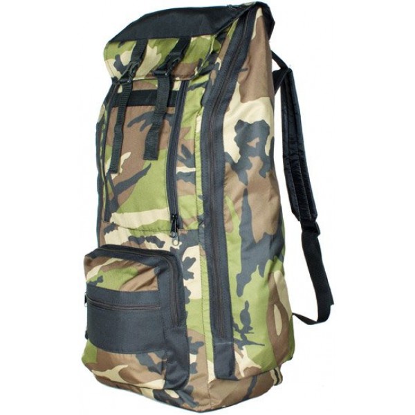 Объем данного рюкзака состовляет 55 литров.Рюкзак имеет четыре кармана на молниях, лямки - прошитый пеноплен.Открывается круговой молнией по фасадной стороне.Сверху - крышка с двумя фастексами - защёлкивающмися пряжками.Материалы: Оксфорд 600, ПУ1000.Цвет: камуфляжный.